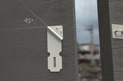 這款門鎖榮獲2012年度紅點(diǎn)設(shè)計(jì)獎(jiǎng)。門鎖的鉸鏈部位采用45°設(shè)計(jì)。主人打開門鎖后,門搭扣在重力的作用下,垂直放下與門齊平,不會(huì)像傳統(tǒng)門搭扣那樣彎曲變形或者伸出門框傷到人。