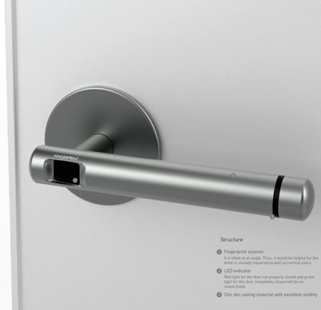 該款大門鎖指紋鎖的指紋識(shí)別位置十分巧妙,設(shè)計(jì)師把識(shí)別位置放在了門鎖的手柄上,指紋識(shí)別與開門動(dòng)作同時(shí)進(jìn)行,開啟大門鎖進(jìn)入家門只需一步到位,便捷省心,實(shí)在是“懶人”必備良品。