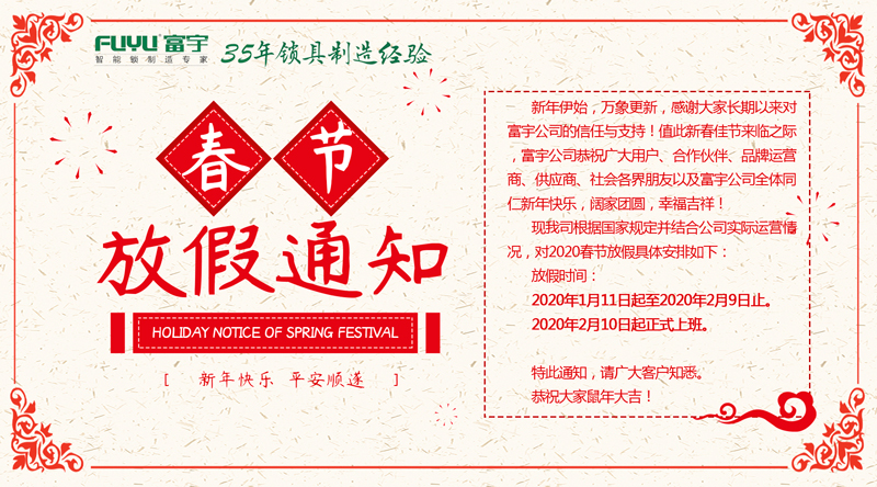中山市富宇智能鎖制造有限公司2020年春節放假通知