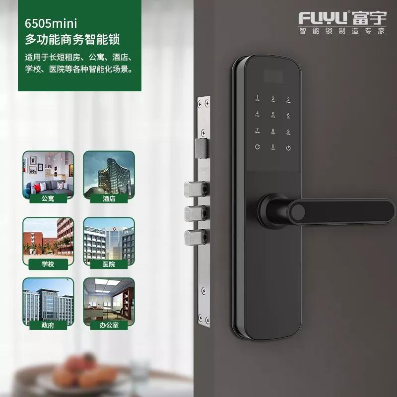 富宇NB-loT多功能選擇商務智能鎖6505mini版,全新管理模式,遠程發(fā)送密碼開鎖、隨時設置時效密碼、海量房源一鍵管理。