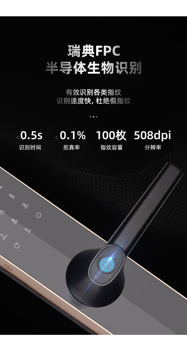 智能鎖指紋識別的拒真率和認假率,也可以稱作拒識率和誤識率。拒真率即FRR,即將真實的指紋圖像認作假。認假率即FAR,即將假的指紋圖像認作真實。影響指紋鎖指紋頭拒真率和認假率與指紋頭采集窗的分辨率及指紋識別技術中獲取指紋方式有關。