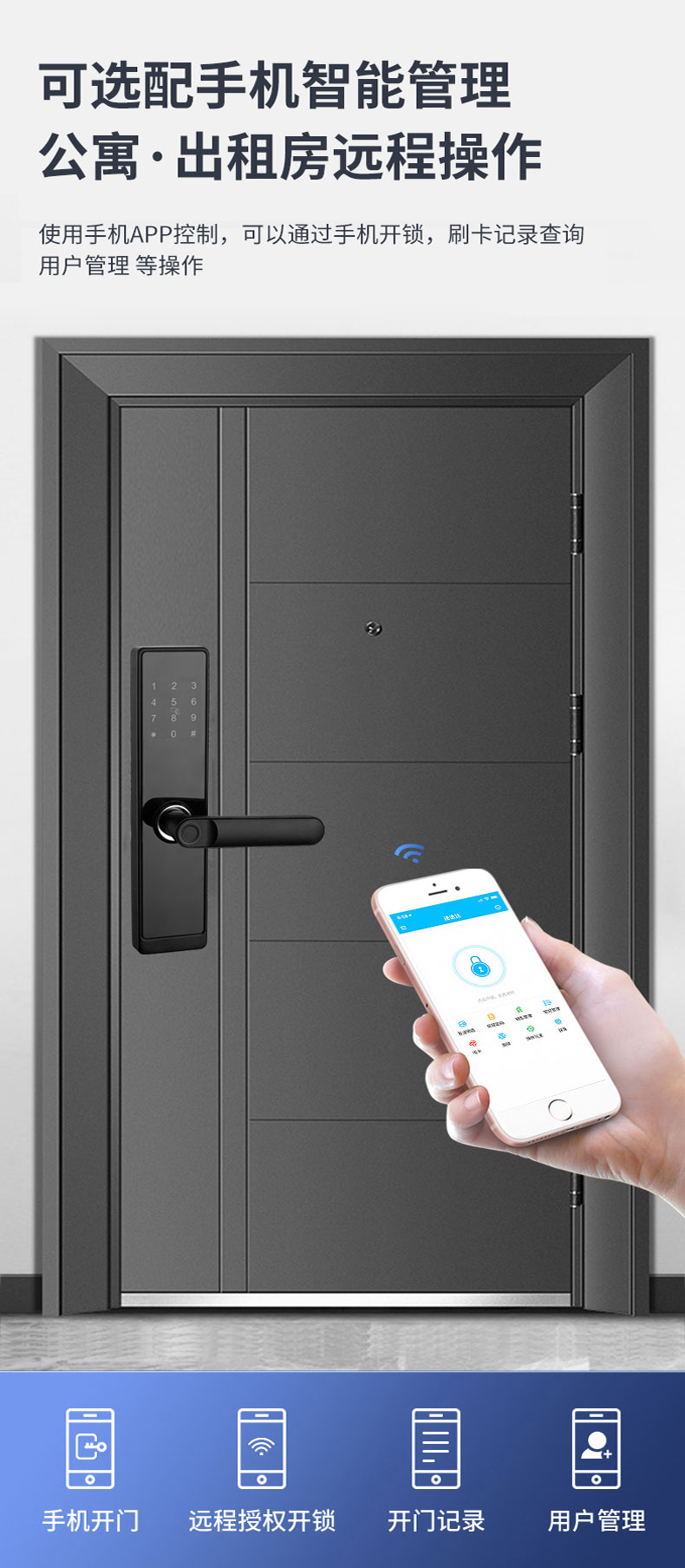 指紋+密碼+卡+鑰匙+涂鴉藍牙+(遙控選配)