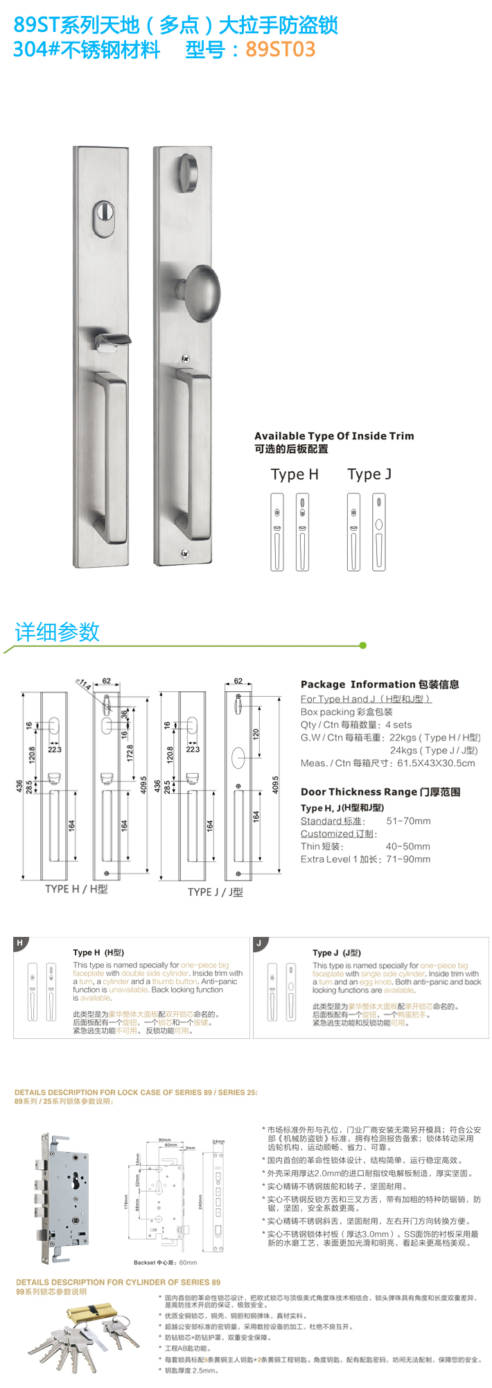 不銹鋼防盜大拉手鎖 89ST03
