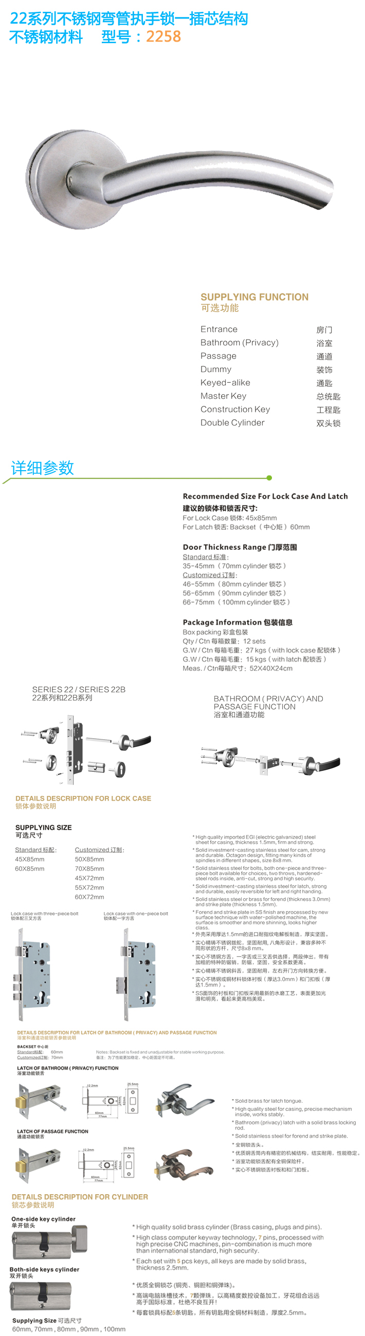 * 表示必填采購:不銹鋼執(zhí)手鎖 22ST58