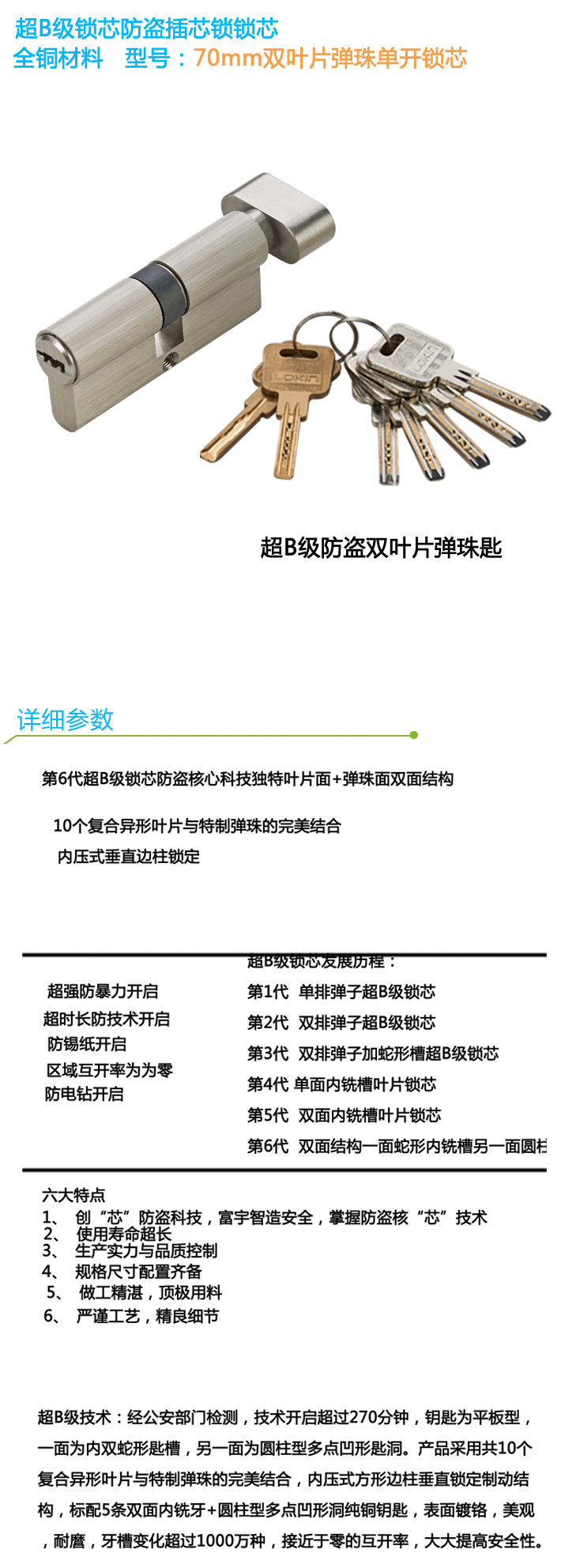 - C級鎖芯 葉片彈珠匙單開鎖芯 AB