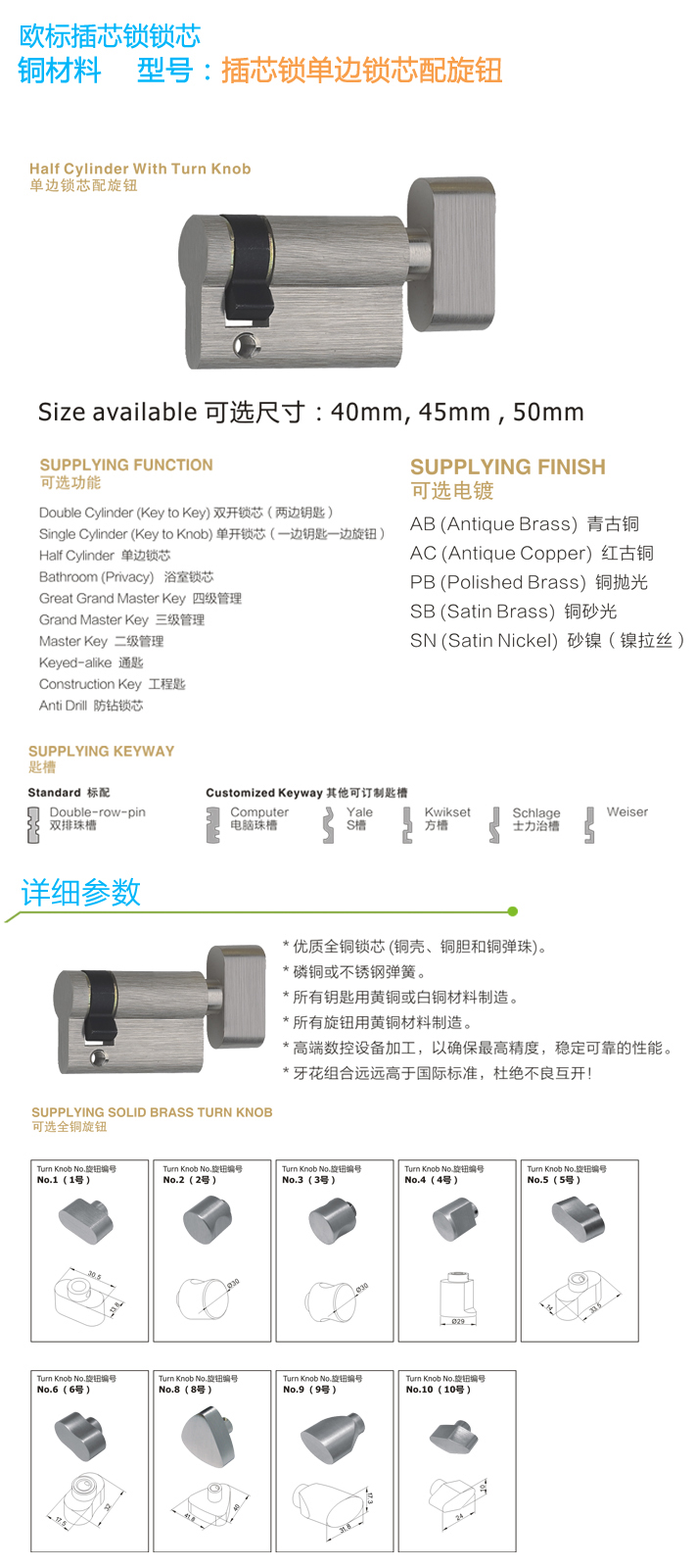 * 表示必填采購:插芯鎖單邊鎖芯配旋鈕