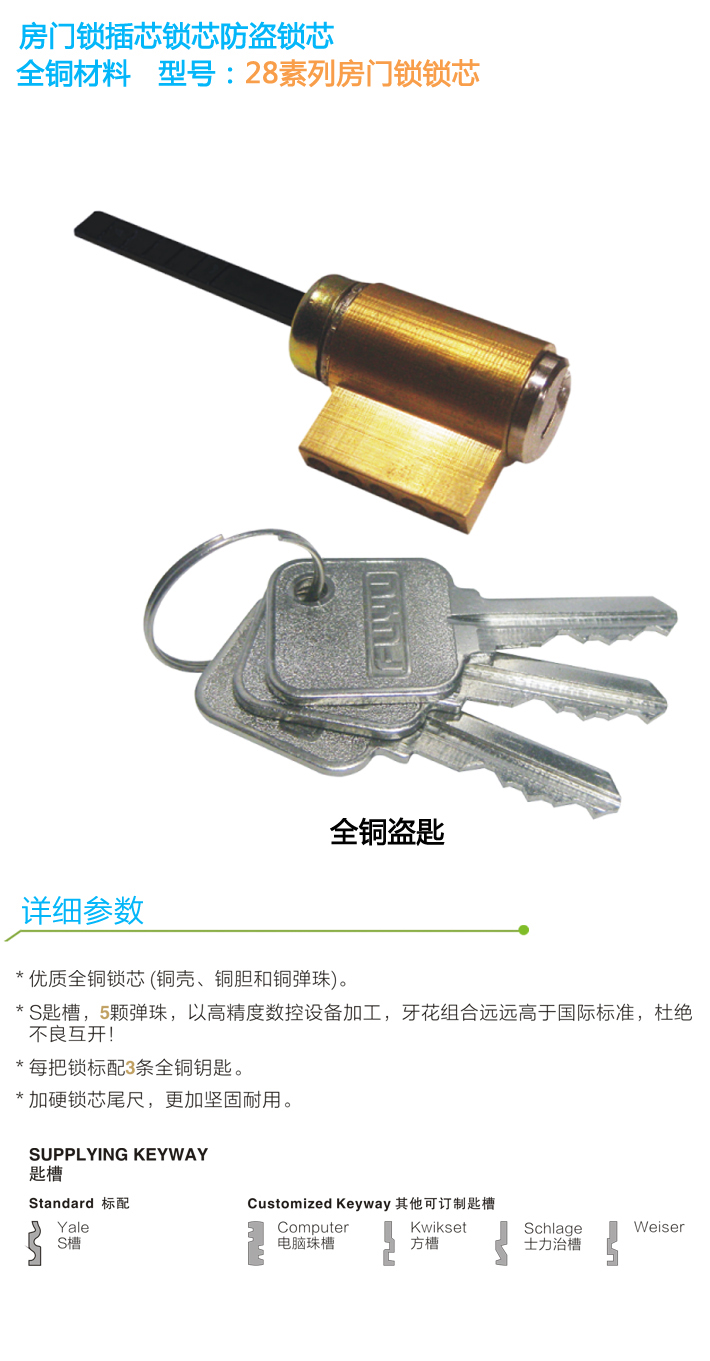 C級鎖芯 雙葉片匙單開鎖芯 SN