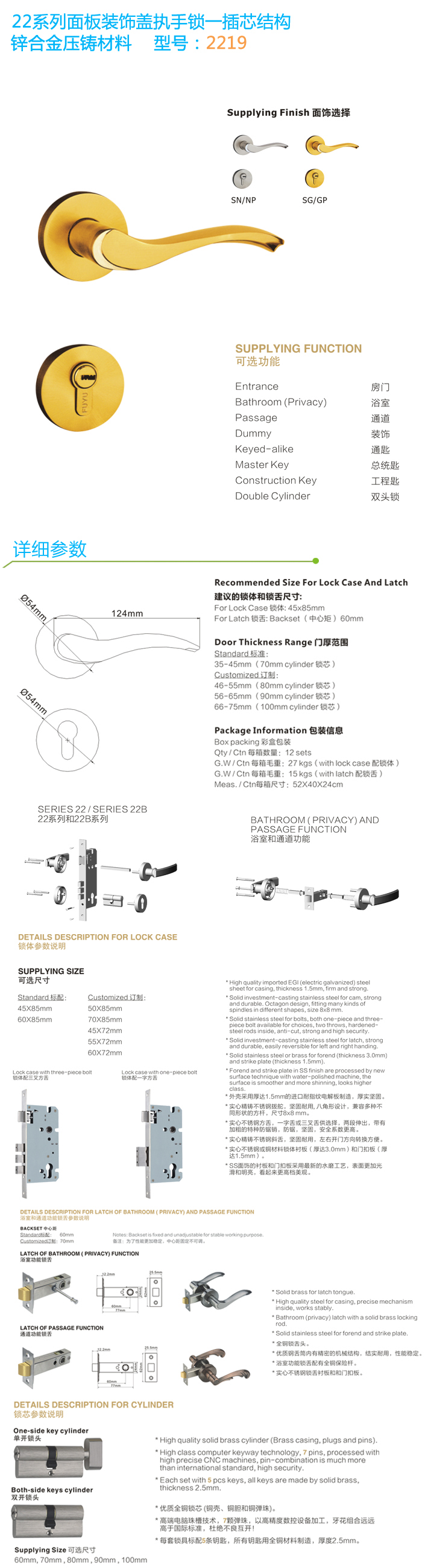 * 表示必填采購:分體裝飾蓋插芯門鎖 2219