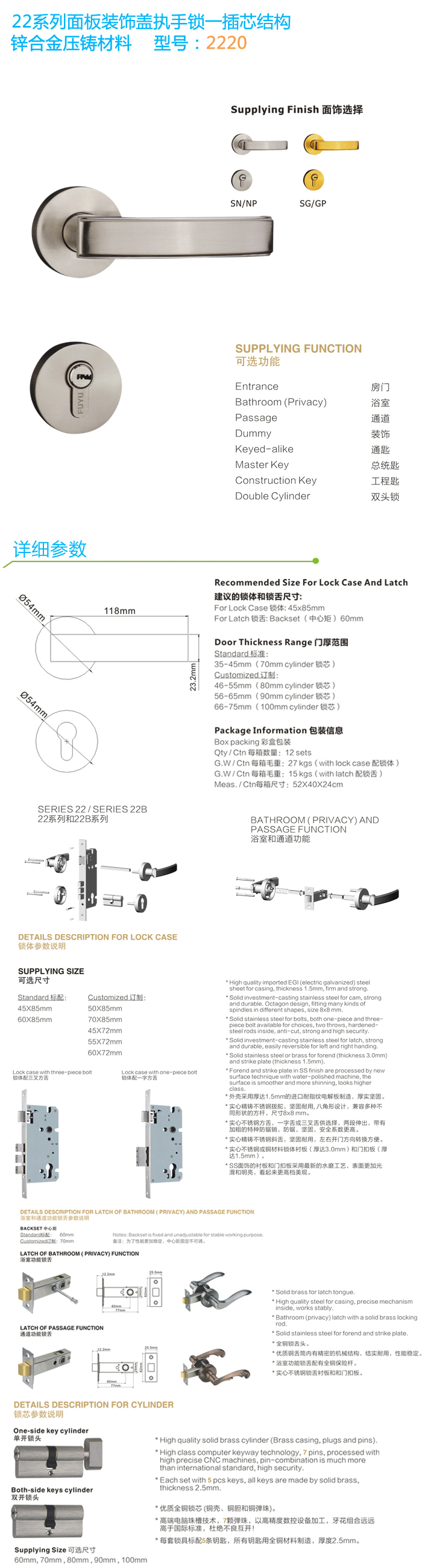 * 表示必填采購:分體裝飾蓋插芯門鎖 2220