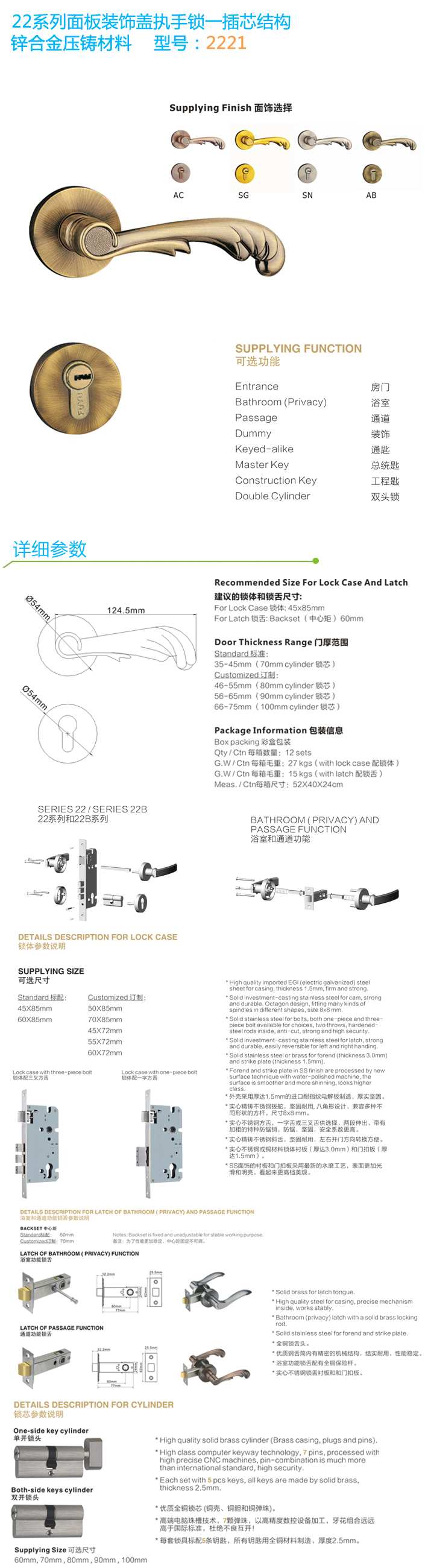 分體裝飾蓋插芯門鎖 2221