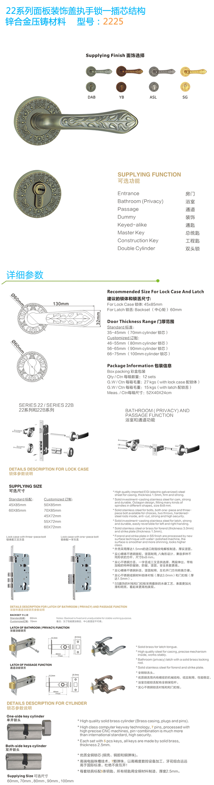 * 表示必填采購:分體裝飾蓋插芯門鎖 2225