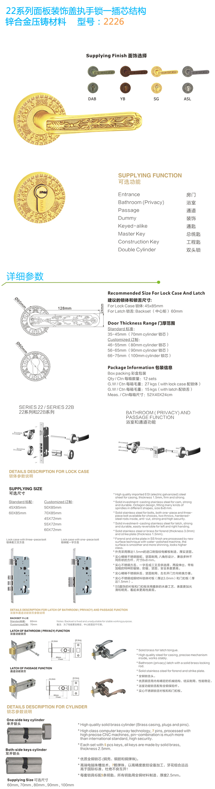分體裝飾蓋插芯門鎖 2226