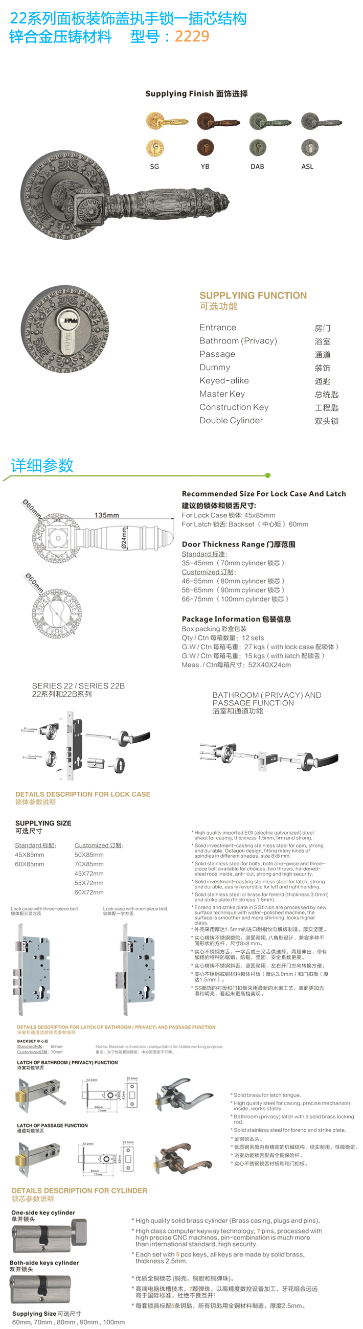 分體裝飾蓋插芯門鎖 2229