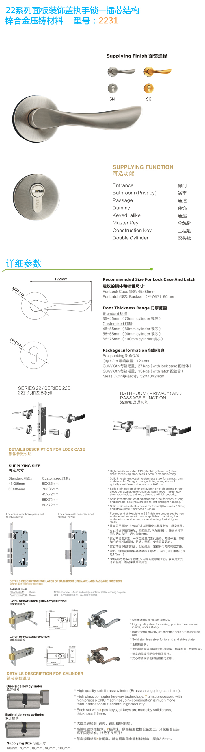 分體裝飾蓋插芯門鎖 2231