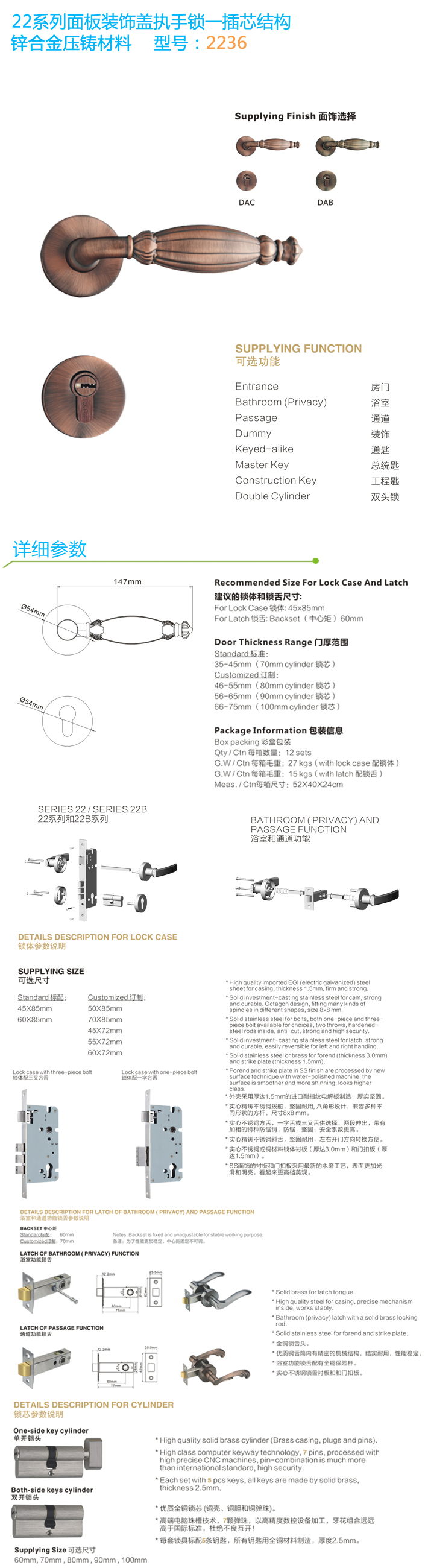 * 表示必填采購:分體裝飾蓋插芯門鎖 2236