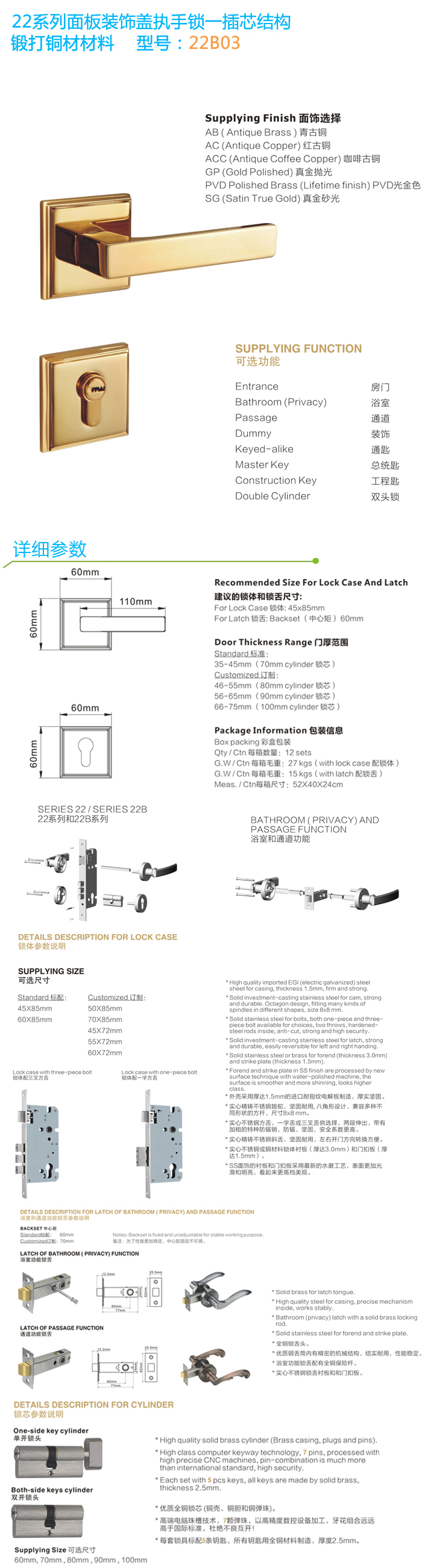 * 表示必填采購:分體裝飾蓋插芯銅鎖 22B03