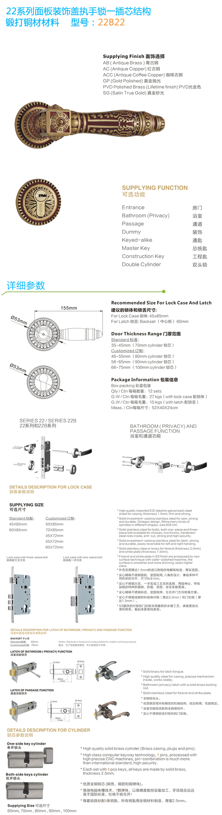 * 優(yōu)質(zhì)全銅鎖芯,標(biāo)配5條全銅鑰匙