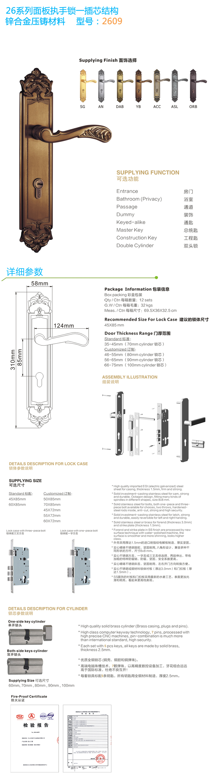 * 表示必填采購(gòu):古典歐式面板執(zhí)手鎖 2609