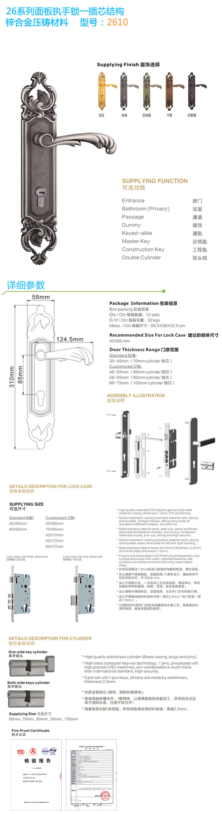 * 表示必填采購:古典歐式面板執手鎖 2610