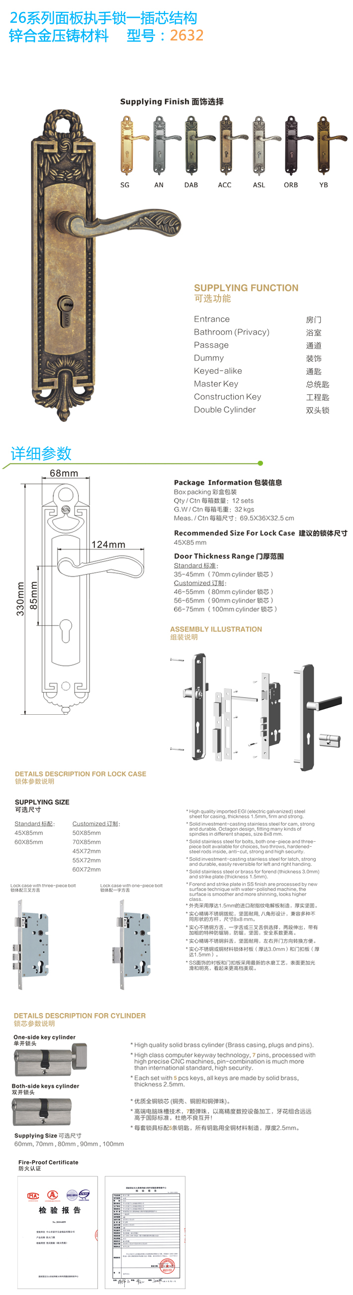 * 表示必填采購:古典歐式面板執手鎖 2632