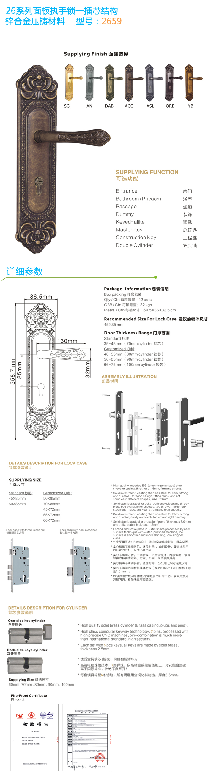 * 優(yōu)質(zhì)全銅鎖芯,標(biāo)配5條全銅鑰匙