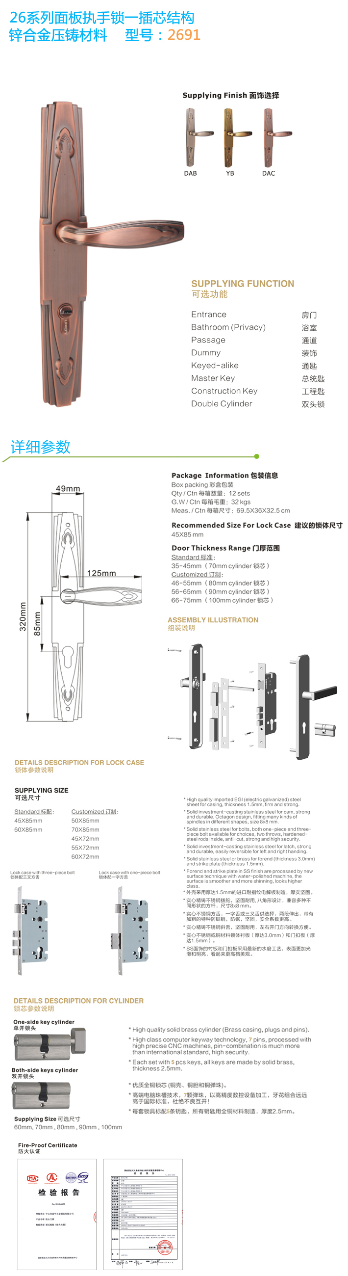 * 表示必填采購:古典歐式面板執手鎖 2691