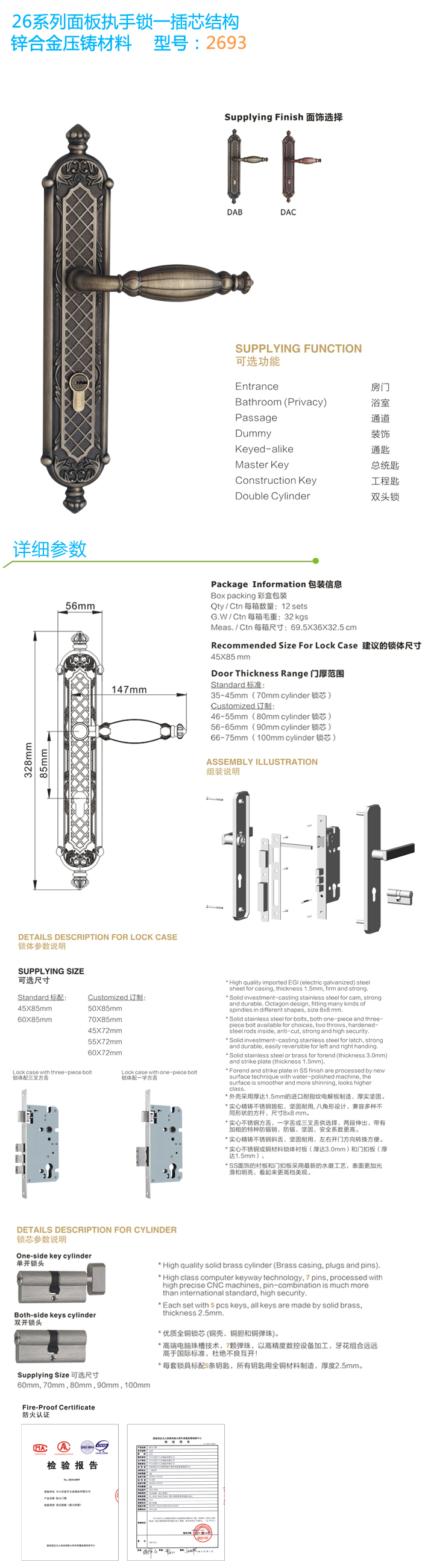 * 表示必填采購:古典歐式面板執手鎖 2693