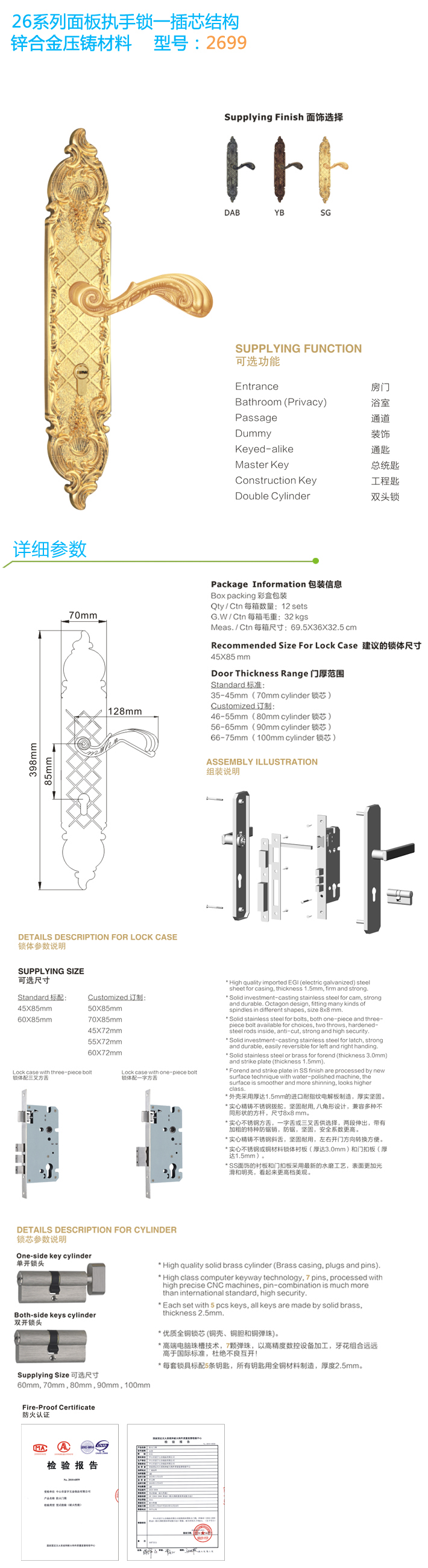 * 表示必填采購:古典歐式面板執手鎖 2699