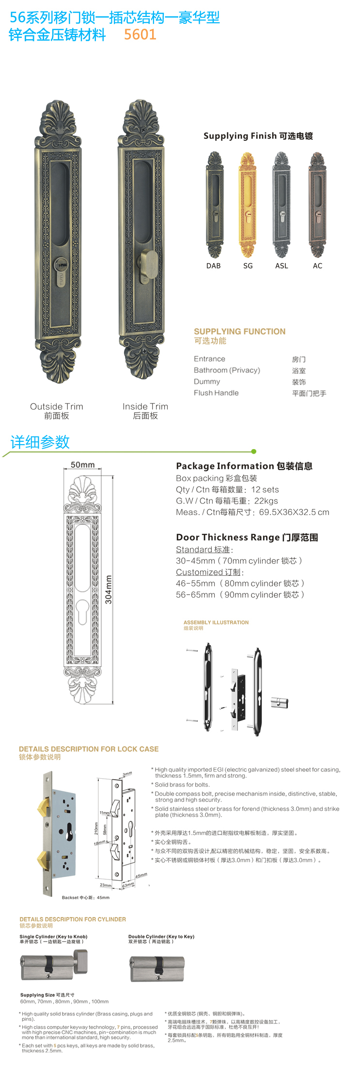 * 優(yōu)質(zhì)全銅鎖芯,標配5條全銅鑰匙