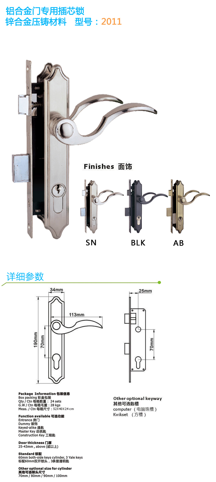 鋁門合金門插芯鎖 2011