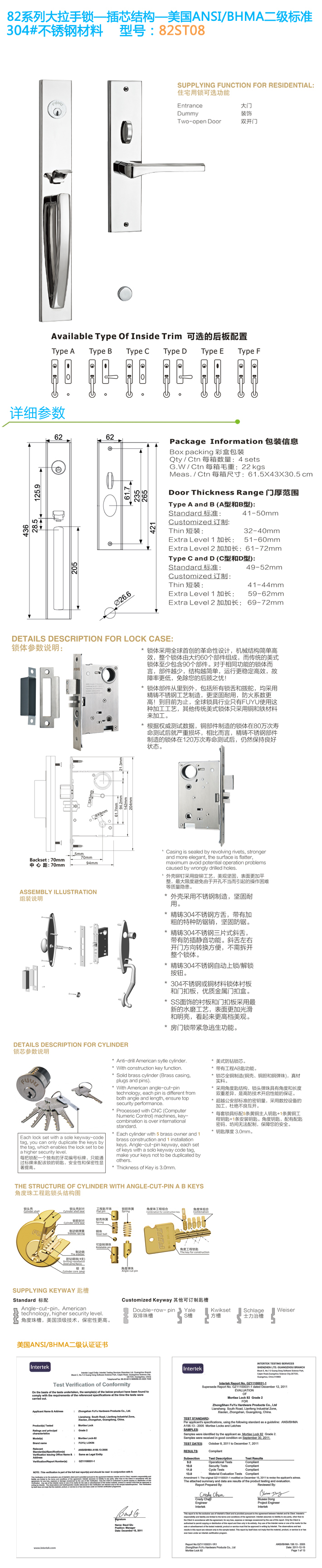 - 美標(biāo)304不銹鋼門鎖 82ST09