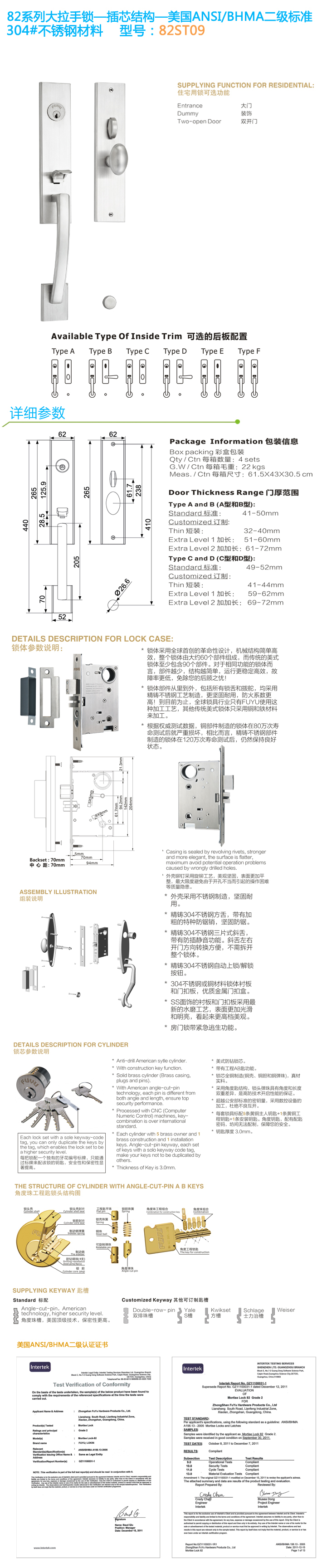 * 表示必填采購:美標304不銹鋼門鎖 82ST09