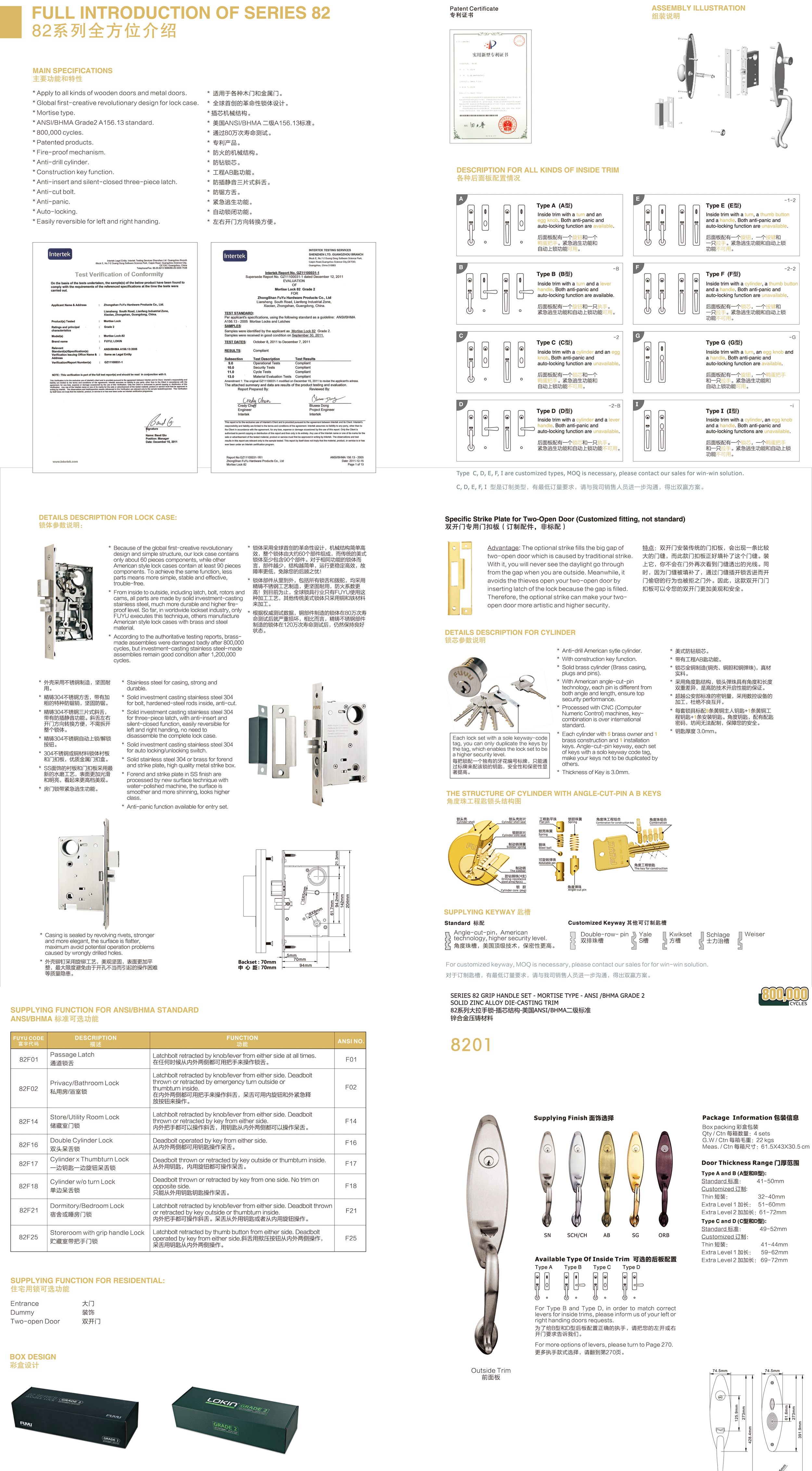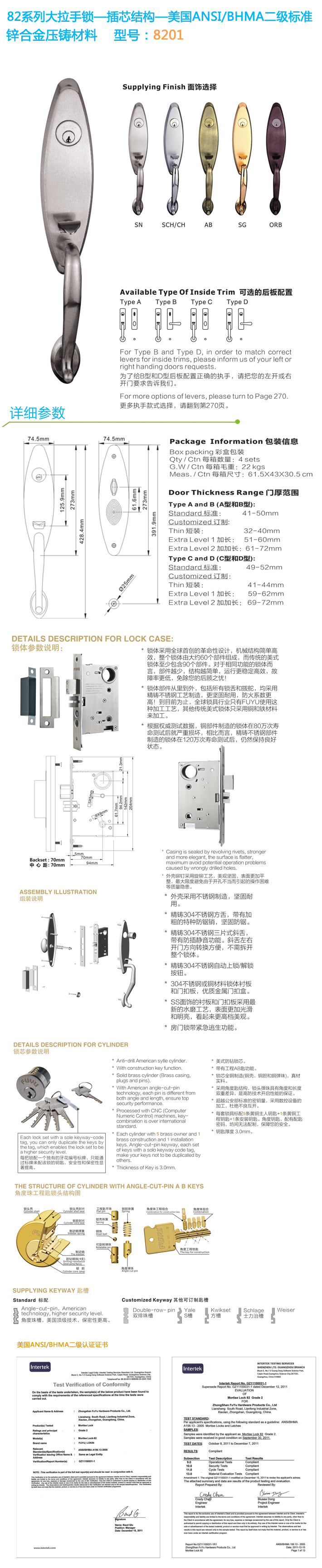 - * 通過美國(guó)ANSI/BHMA GRADE二級(jí)認(rèn)證