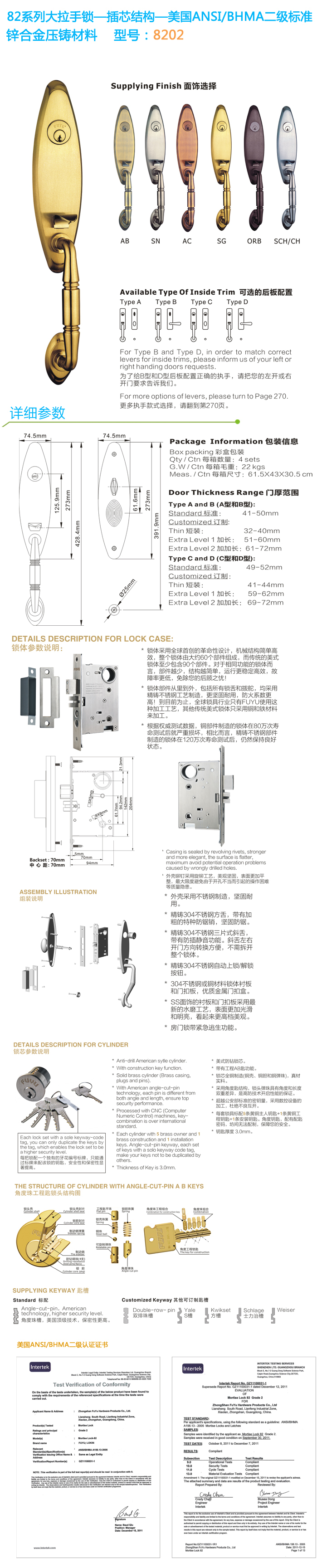 * 鎖體采用精鑄不銹鋼斜舌、防鋸方舌、轉(zhuǎn)子和拔舵