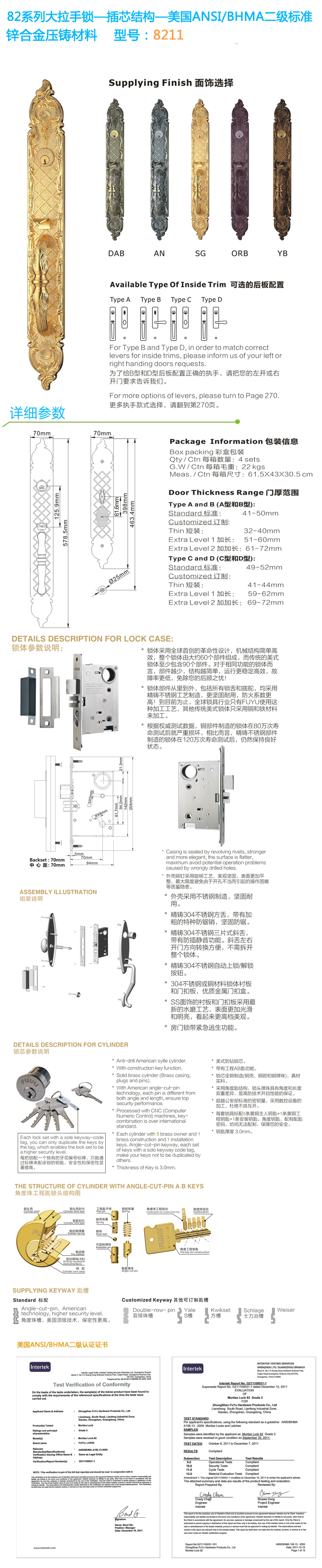 - * 通過(guò)美國(guó)ANSI/BHMA GRADE二級(jí)認(rèn)證