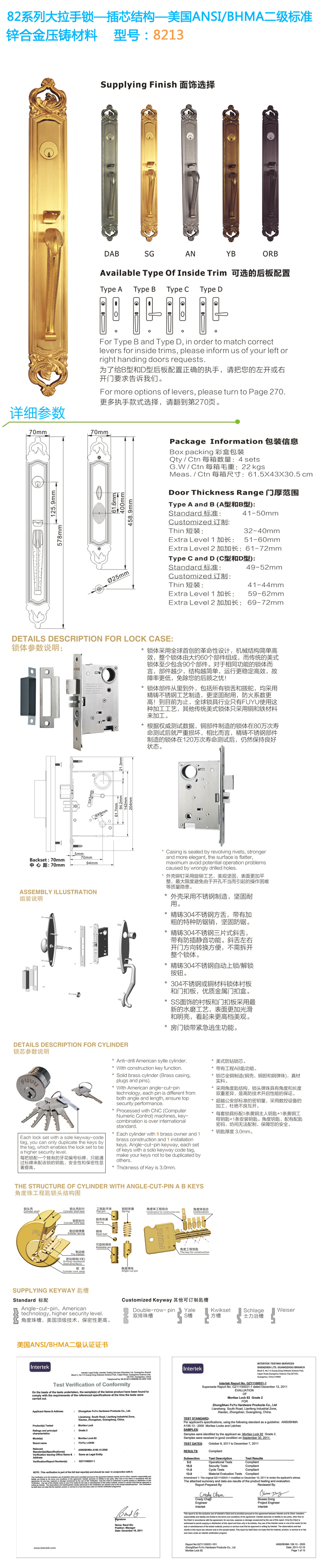 * 鎖體采用精鑄不銹鋼斜舌、防鋸方舌、轉子和拔舵