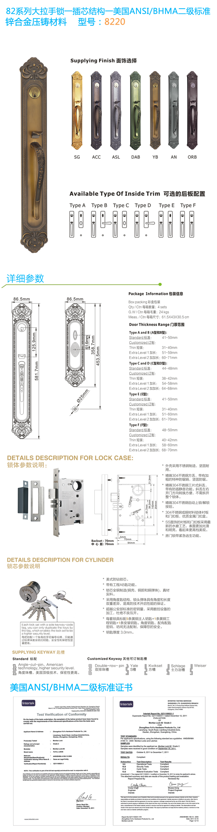 - * 通過美國ANSI/BHMA GRADE二級(jí)認(rèn)證