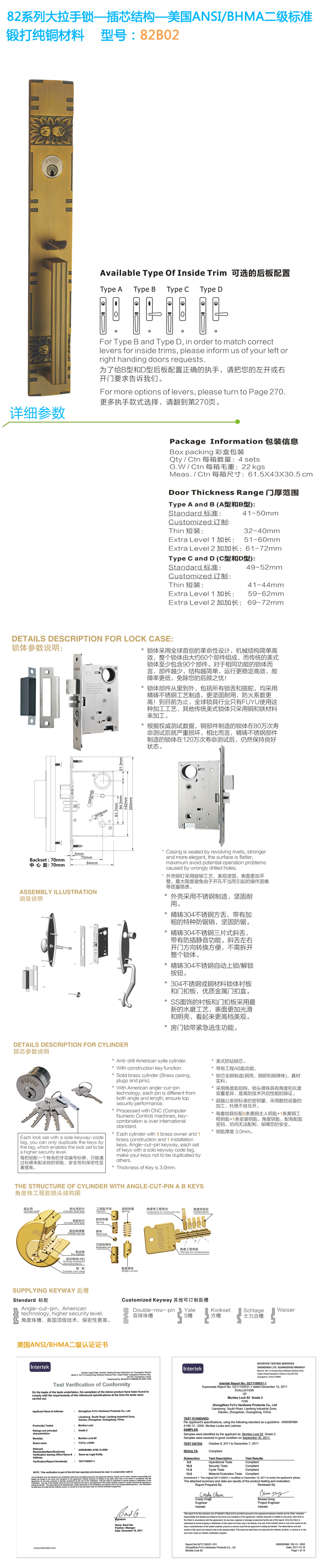 * 鎖體采用精鑄不銹鋼斜舌、防鋸方舌、轉子和拔舵
