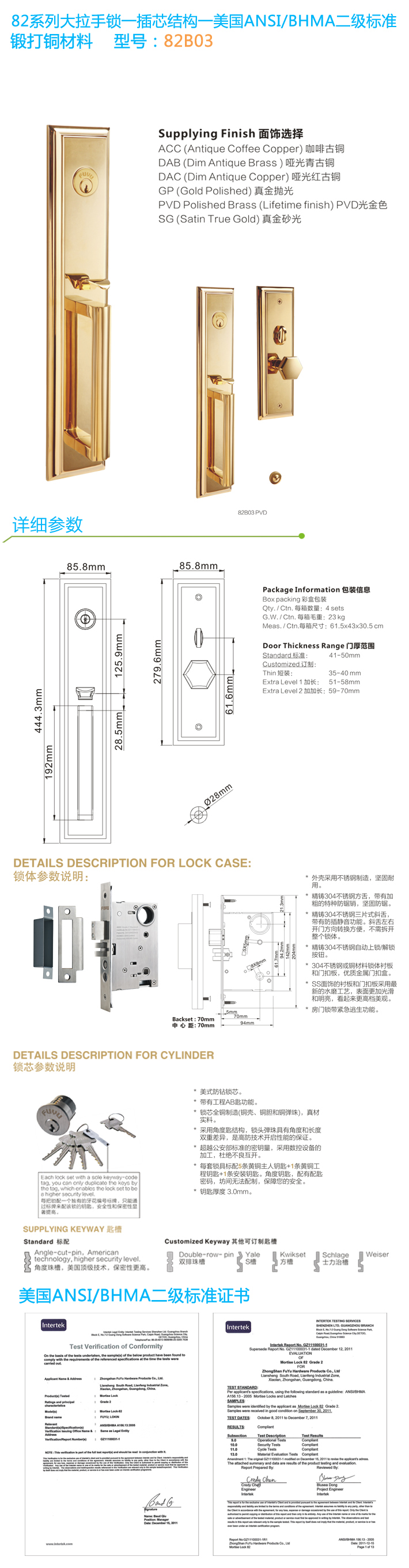 - * 通過美國ANSI/BHMA GRADE二級(jí)認(rèn)證