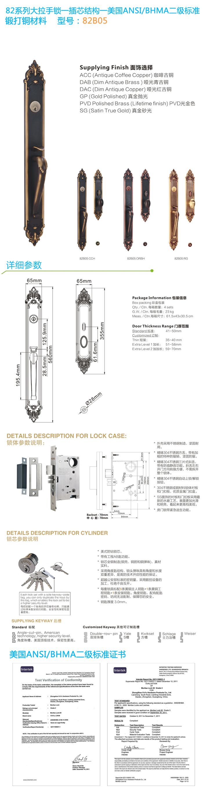 * 表示必填采購:美標大拉手銅鎖 82B05