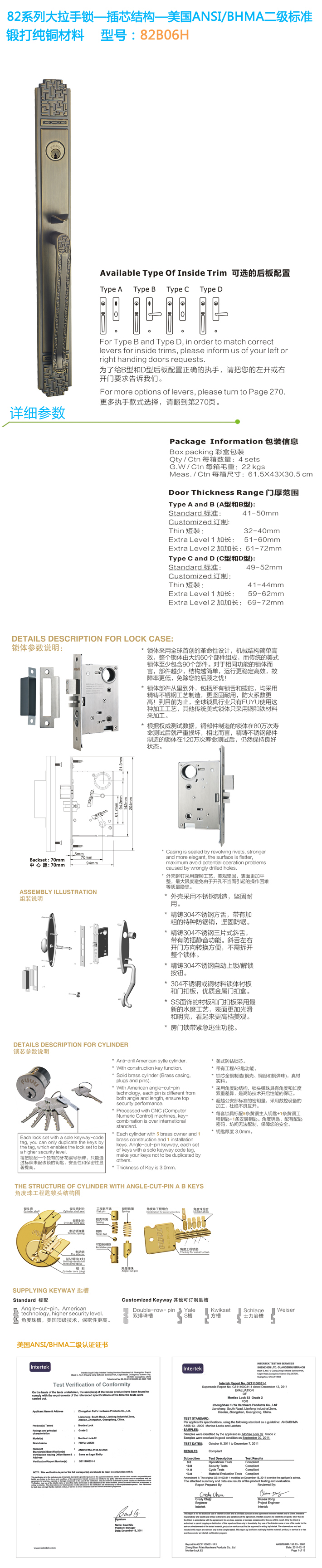 * 通過美國ANSI/BHMA GRADE二級認證