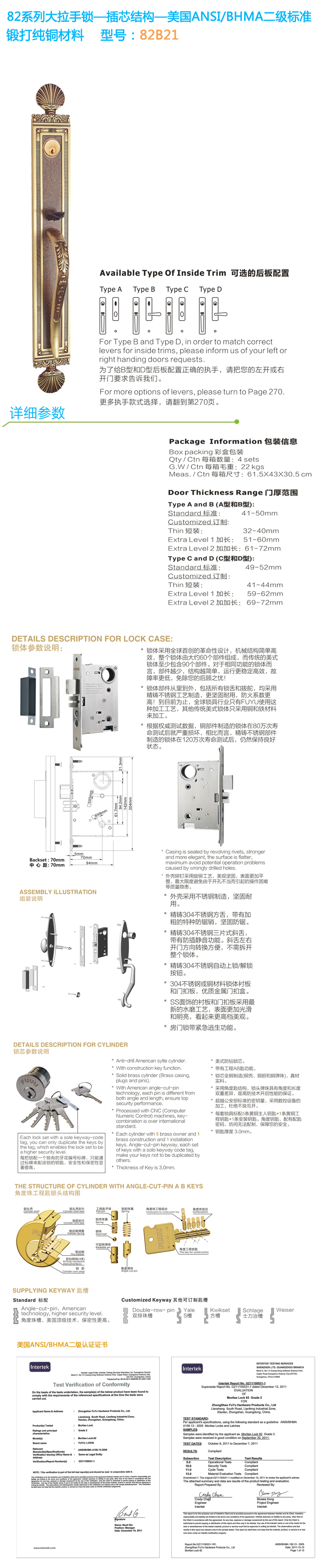 - 美標(biāo)別墅大拉手銅鎖 82B15