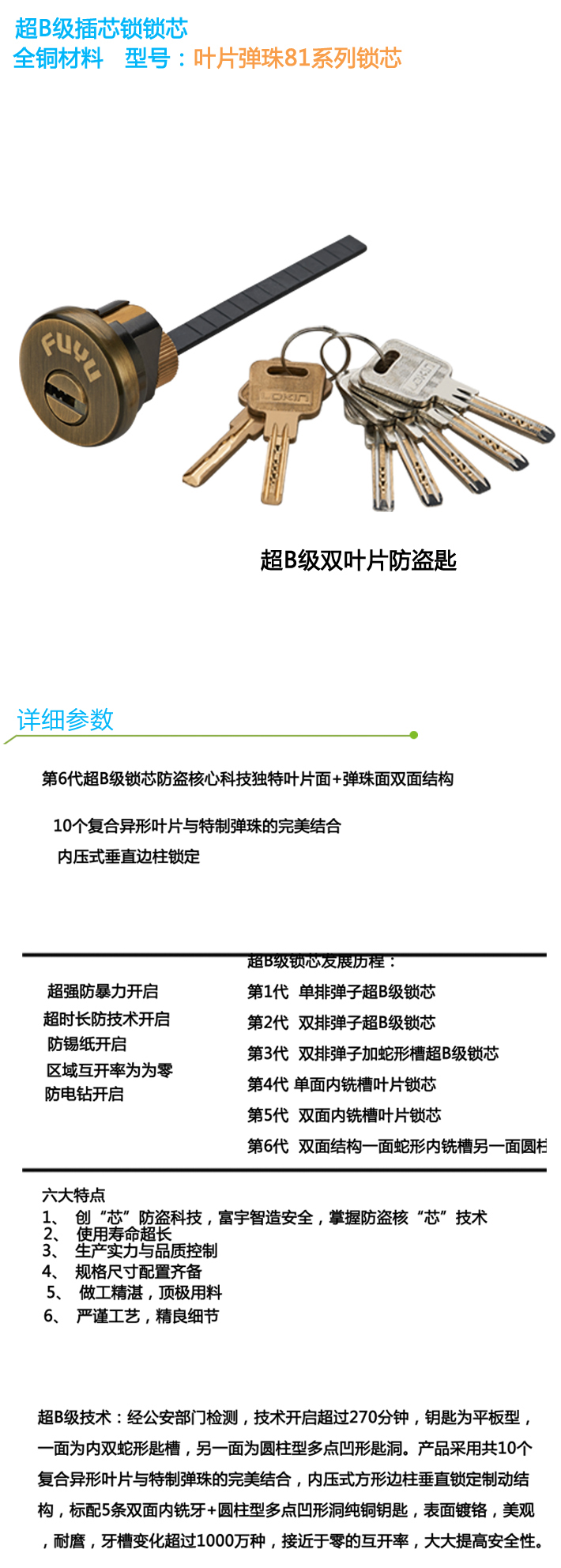 * 表示必填采購:歐標(biāo)插芯鎖芯 81系列葉片彈珠匙 AB