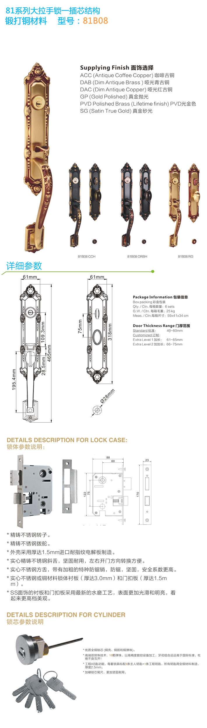 * 表示必填采購:歐標大拉手銅鎖 81B08