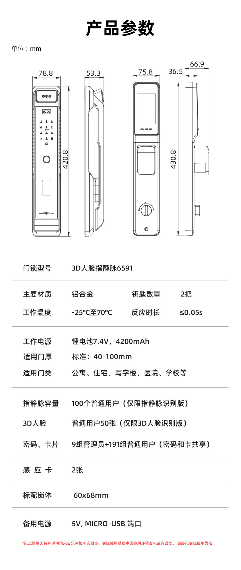 * 表示必填采購:3D人臉指靜脈智能鎖-6591