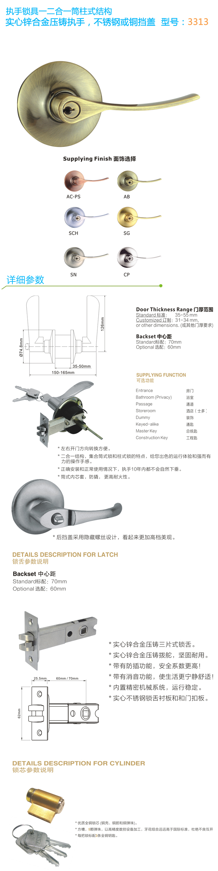 * 表示必填采購(gòu):筒柱式二合一結(jié)構(gòu)執(zhí)手鎖 3313