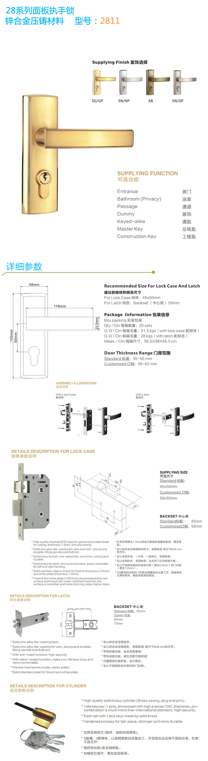 * 表示必填采購:現(xiàn)代簡約小面板執(zhí)手門鎖 2811