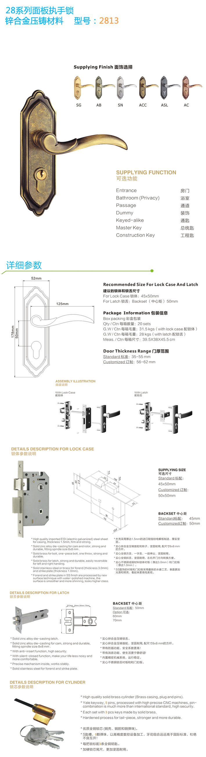 * 優(yōu)質(zhì)全銅鎖芯,標(biāo)配3條全銅鑰匙